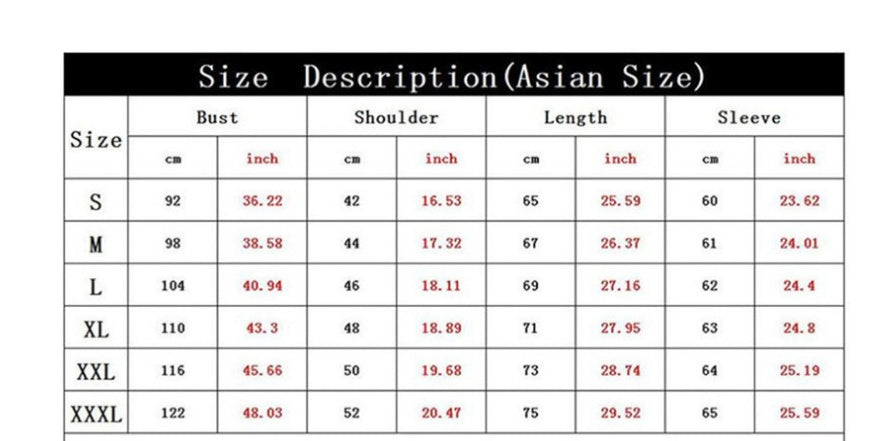 1. Asian sizes are 1 to 2 sizes smaller than European and American people. Choose the larger size if your size between two sizes. Please allow 2-3cm differences due to manual measurement.